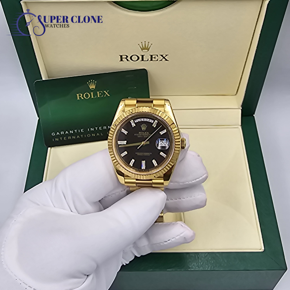 Rolex Day-Date 40 228238 Yellow Gold Black Baguette Diamond Dial